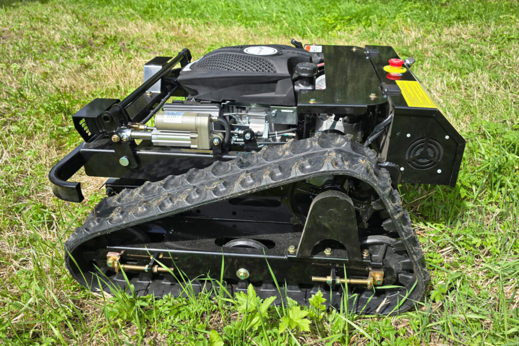 Schon bei der ersten Vorführung waren wir von diesem Mäher angetan. Ein 50 cm breites Mähdeck, angetrieben von einem 9,5 PS starken Motor, montiert auf einem stabilen Rahmen. Ein breites Raupenfahrwerk, Arbeitsscheinwerfer und eine durchdachte Fernsteuerung. Unser Interesse war sofort geweckt!